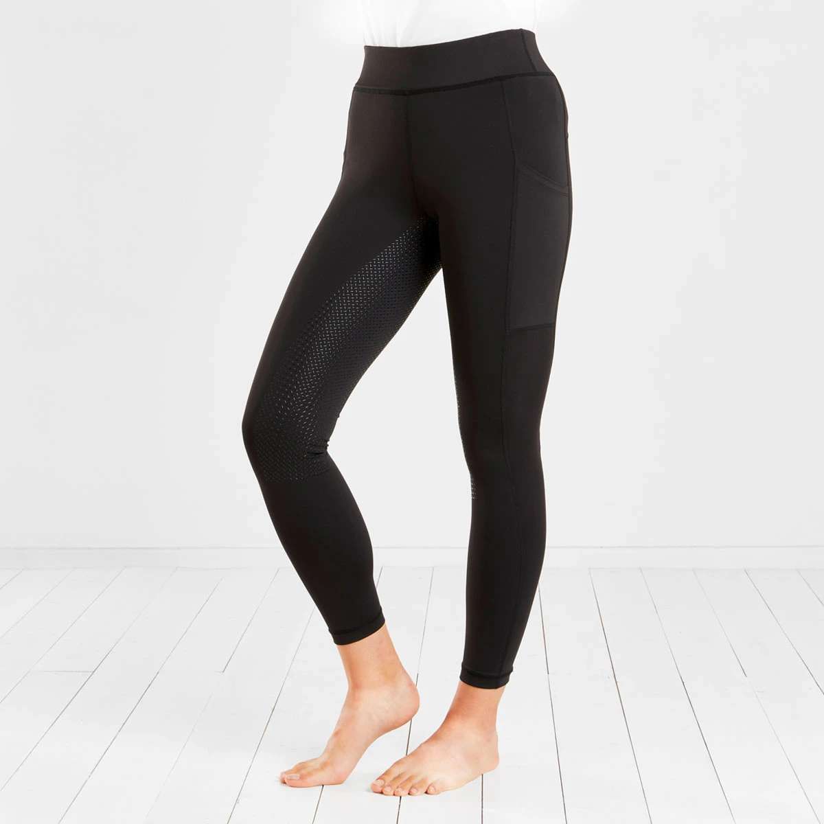 Ladies pull on riding tight with full silicone seat and two handy large phone pockets. High shine finish full silicone grip seat creates a classic yet simple design without compromising on style. A wide elastic waistband ensuring a comfortable flattering fit. Made from a combination of polyester and elastane fabric they are the perfect everyday riding tight with a 4-way stretch which allows for free easy movement in and out of the saddle.