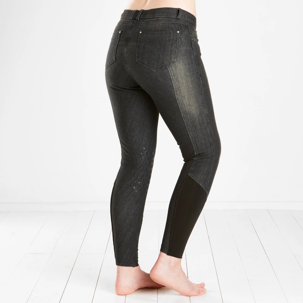 From home to horse, introducing the Hayton Denim Breeches, offering a super flattering fit that are not only stylish but practical for everyday riding and yard jobs. The 4 four way stretch allows these breeches to fit like a second skin making them a truly functional riding breech. Features a subtle silicone knee patch, stretch ankle panels and stitch detail to the back pockets. The Hayton Denim Breeches will give you hours of comfort in the saddle and unlimited style round the yard!