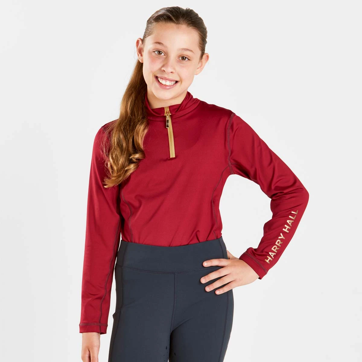 Smart, stylish and practical, the Harry Hall Junior Base Layer is a must have addition to any wardrobe season after season. Designed from a comfortable four way stretch material and featuring 1/4 zip front fastening at the neck for ease of wear in a stylish gold effect finish. Not only functional but stylish too, with subtle branding down the arm in a gold print with matching diamond to the back. Team up with the Harry Hall Hat Silk for the complete matching look.