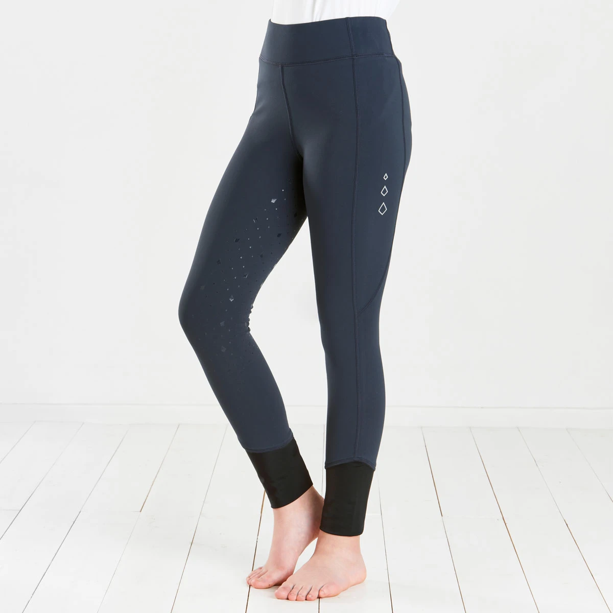The Harry Hall Junior Winter Riding Tights with Full Silicone Seat will keep the chill away in the colder months. These riding tights have been designed in a functional four-way stretch fabric with brushed back fleece to the inside, helping your young rider stay warmer in cold weather without sacrificing their freedom of movement. The unrestricted, form fitting material remains lightweight and soft offering comfort, teamed up with a high waist and waistband leaving you with a supportive fit. A generous side pocket on the thigh allows any phone size to fit inside and remain safe. These Winter Riding Tights have been finished off with a full silicone seat, providing more security in the saddle and subtle harry hall branding on the waistband and leg.