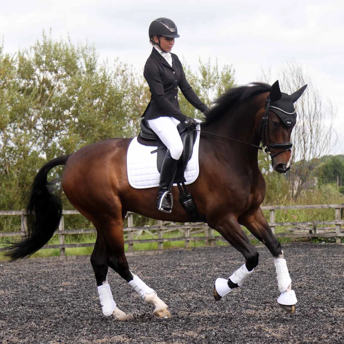 The Harry Hall Ladies Show Jacket is an elegant show jacket with added sparkle. Made from lightweight stretch fabric and tailored for a flattering feminine fit, making this a must-have for all competition riders.