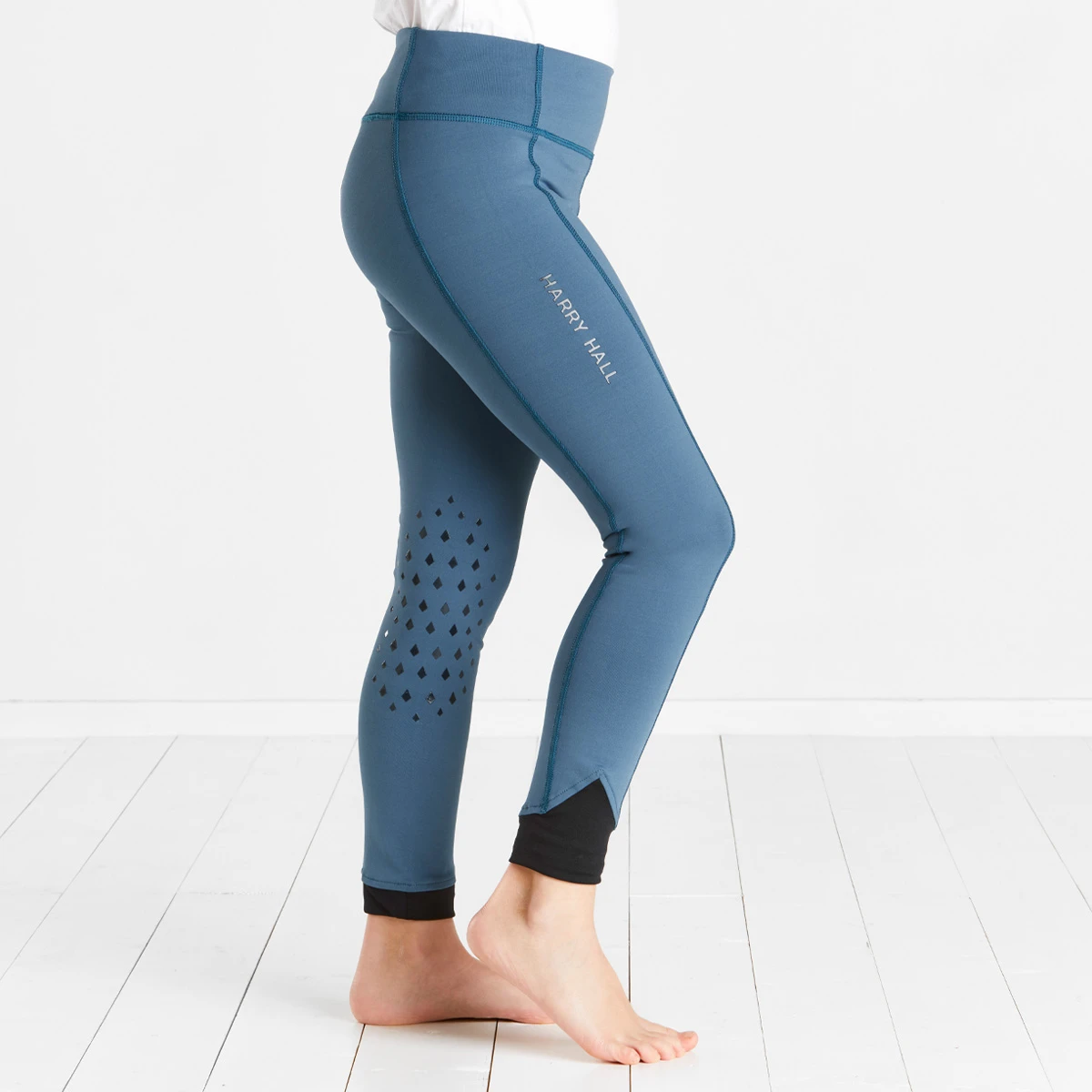 The Harry Hall Junior Bala Silicone Knee Tights are the perfect addition to any young riders wardrobe. The easy pull-on style with a wide waistband makes these a great choice for days at the yard, providing maximum comfort all day long. The fabric has great stretch qualities whilst the silicone knee print gives extra support when needed in the saddle. Designed in a beautiful blue colour to add a pop of colour with added soft ankle panels for comfort under riding boots.