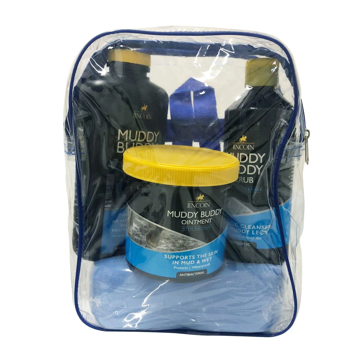 This handy back pack is filled with products to help protect your horse from mud related conditions