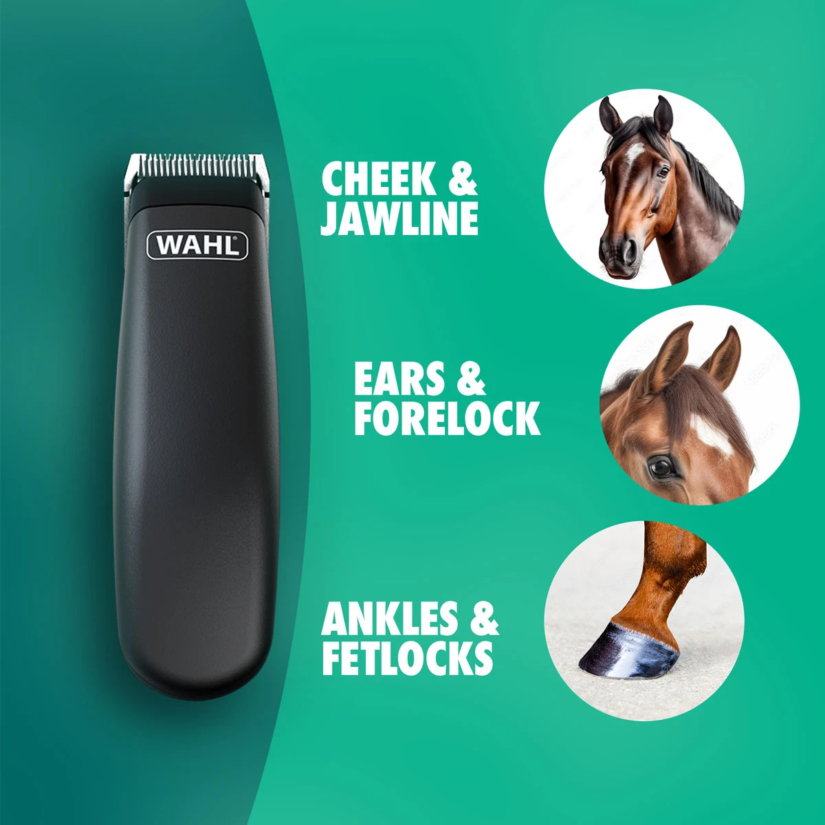Included in the kit is the Wahl Pocket Pro Trimmer. This cordless horse trimmer is compact, ergonomic and the ideal tool for trimming ‘difficult to reach areas’ such as parts of your horses face and ears. The soft touch grip makes is easy to control, whilst its small size makes it easy to conceal for nervous animals.
