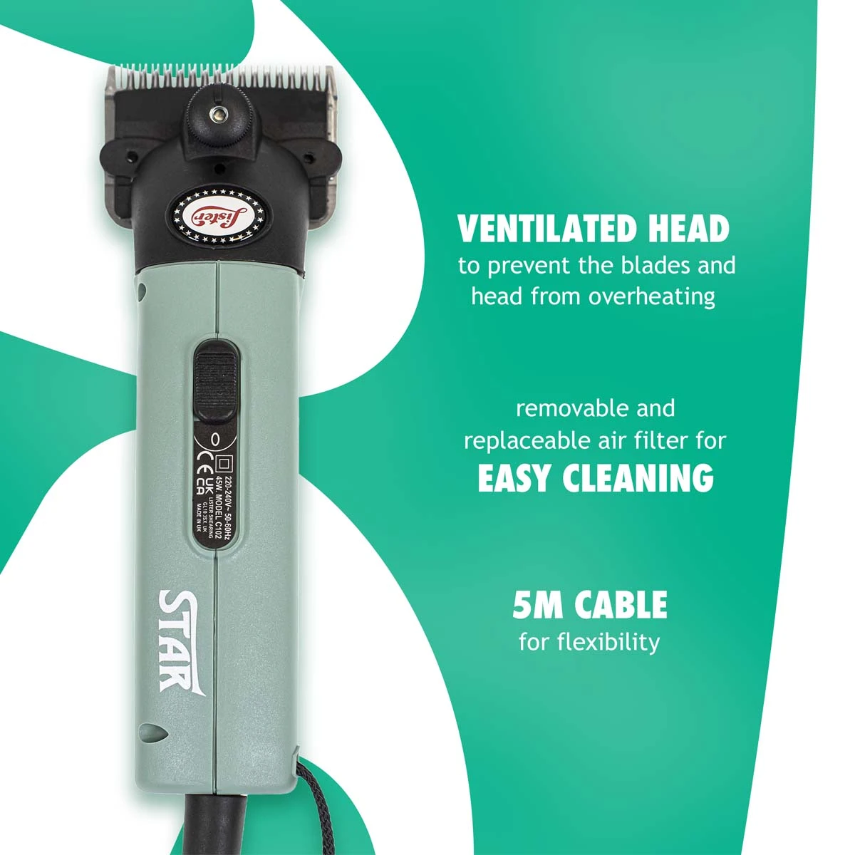 One of Lister’s most popular horse clippers, the Lister Star is a beloved fixture in many stables. This powerful, fast and efficient equine clipper is ideal for professionals and enthusiasts alike, and has a slim, balanced grip for maximum comfort. The Star Clipper is also lightweight so you can clip for longer, and features an intelligent tensioning system to ensure the right cutting pressure every time.