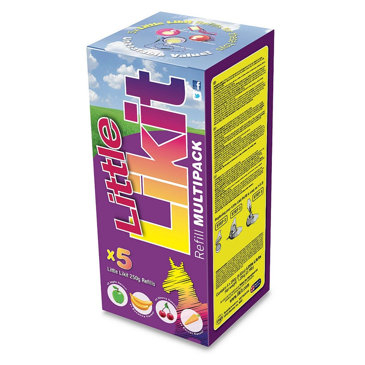 The Little Likit Multipack contains a mixture of the five most popular flavours, x2 apple, 1 x banana, 1x carrot and 1x cherry.