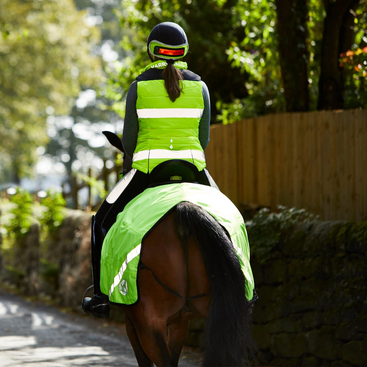 Waterproof wrap around exercise sheet made from 600 denier oxford weave polyester and lined with polar fleece. Lightweight and breathable, this exercise sheet can be fitted over or under the saddle flaps. Designed to keep your horse dry and warm in wet weather conditions. Fastens in front of the withers with a hook and loop fastening and fillet string at the rear making this easy to attach and remove. Ideal to use whilst out hacking with reflective strips and badge for safety and added visibility.