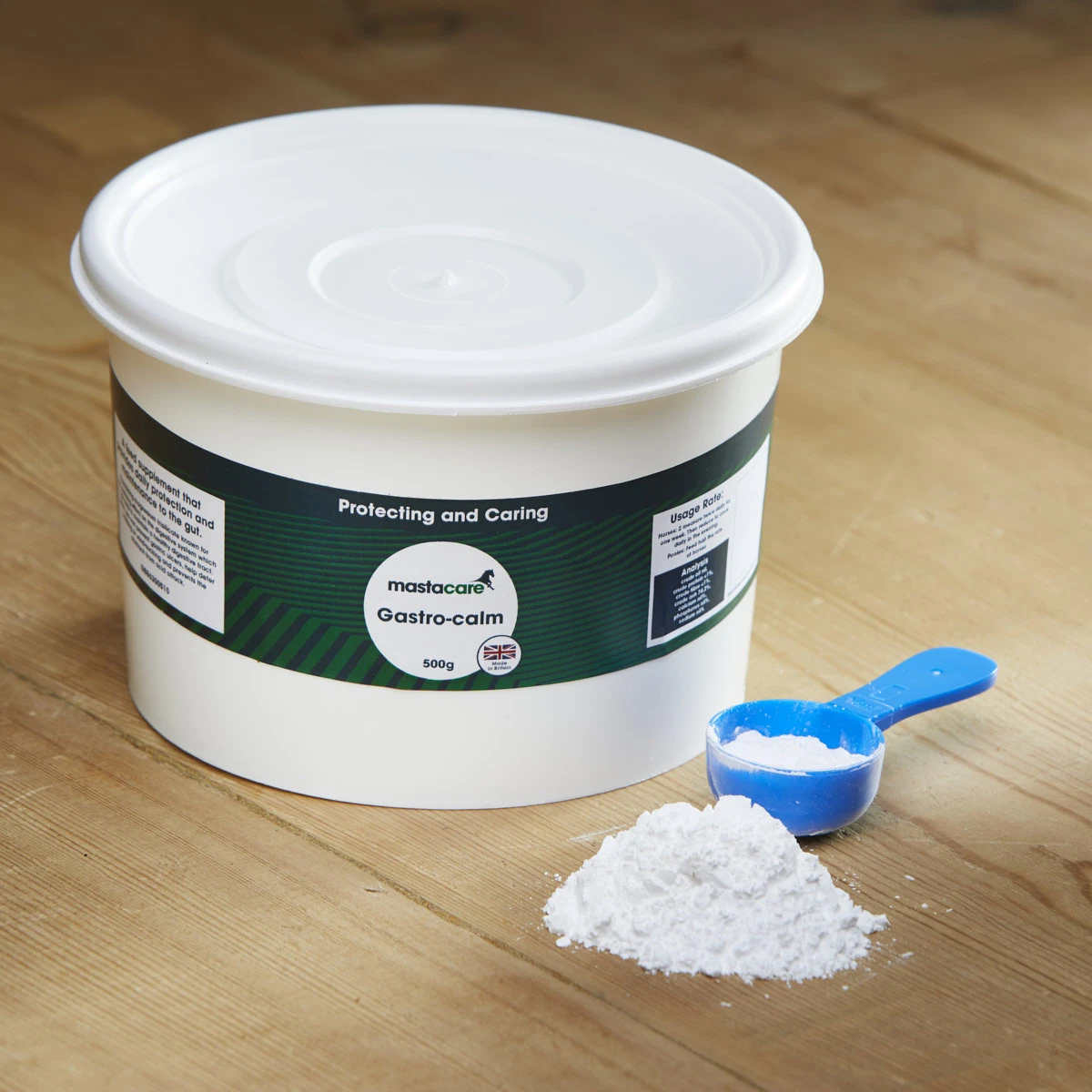Mastacare Gastro-calm has a soothing effect on the digestive system of horses and ponies. Containing magnesium trisilicate known for its calming effect on the digestive system. Excess gastric acid can have a serious effect on your horses appetite and performance, Gastro-calm soothes the gastric system which can help to maintain a healthy digestive tract in horses and ponies. Daily use can prevent gastric ulcers, help deter cribbing or wind-sucking and prevents the stomach from acid attack. A feed supplement that provides daily protection and maintenance to the gut.