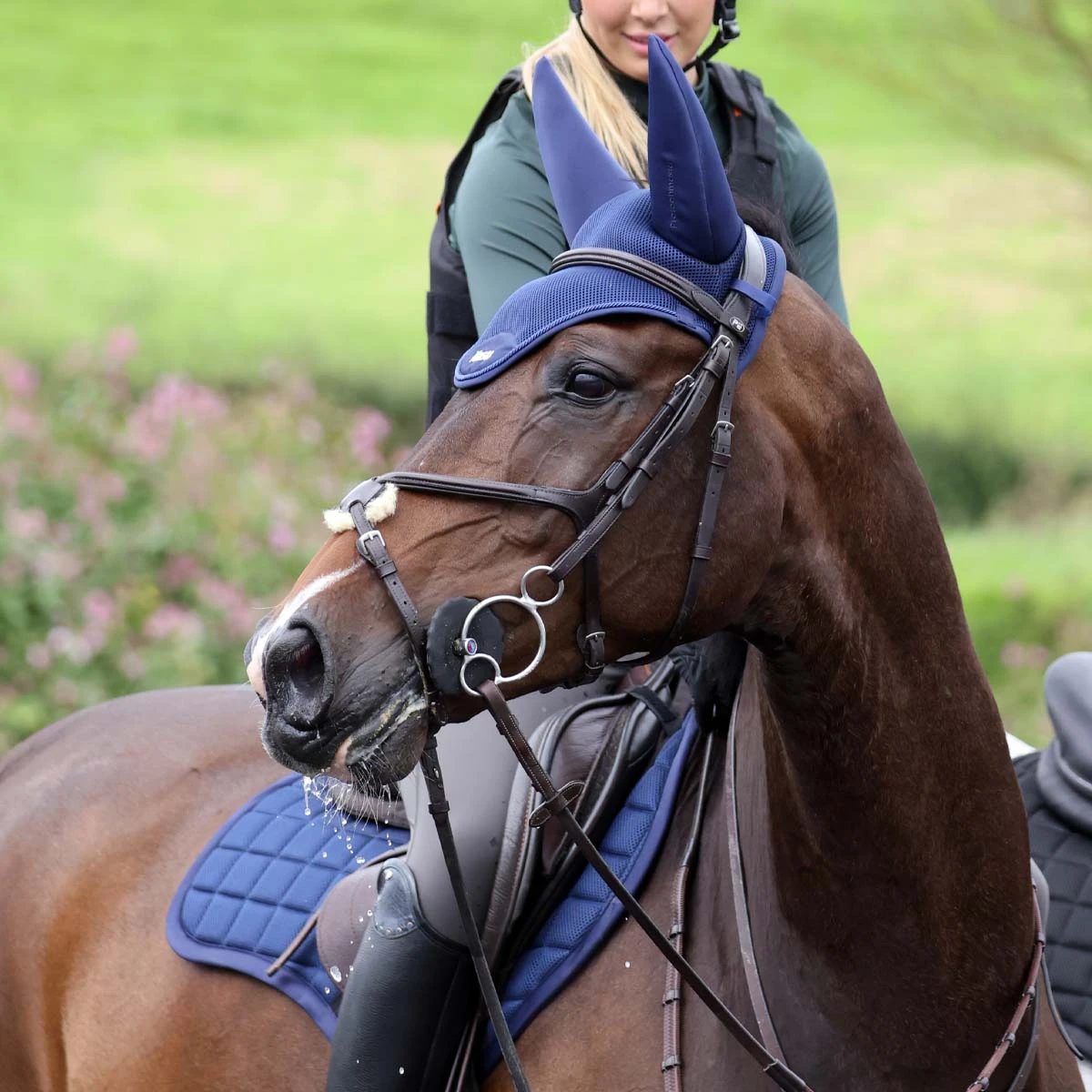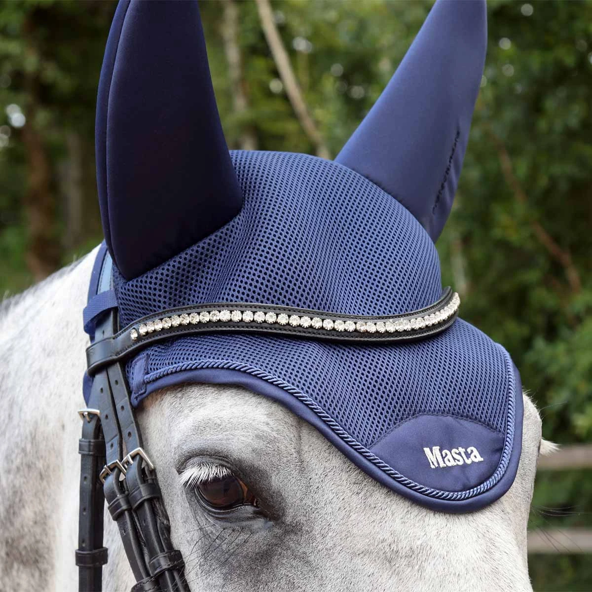 Part of the Protechmasta collection, the Protechmasta Airmesh Fly Veil with Soundproof Ears combines naturalistic ceramic infused FIR lining with 3D airmesh outer and rope piping creating a luxurious high-end finish. A lightweight and breathable design, the airmesh fabric allows for great breathability. The soundproof ears prevent noise distractions and help improve concentration, with a deeper section behind the ears and hook and loop straps to fit securely behind the bridle. The embroidered Protechmasta logo on one ear blends perfectly for an added subtle detail. Create the full Protechmasta Airmesh collection and team up with the Protechmasta Airmesh GP/Jump or Dressage Saddlecloths.